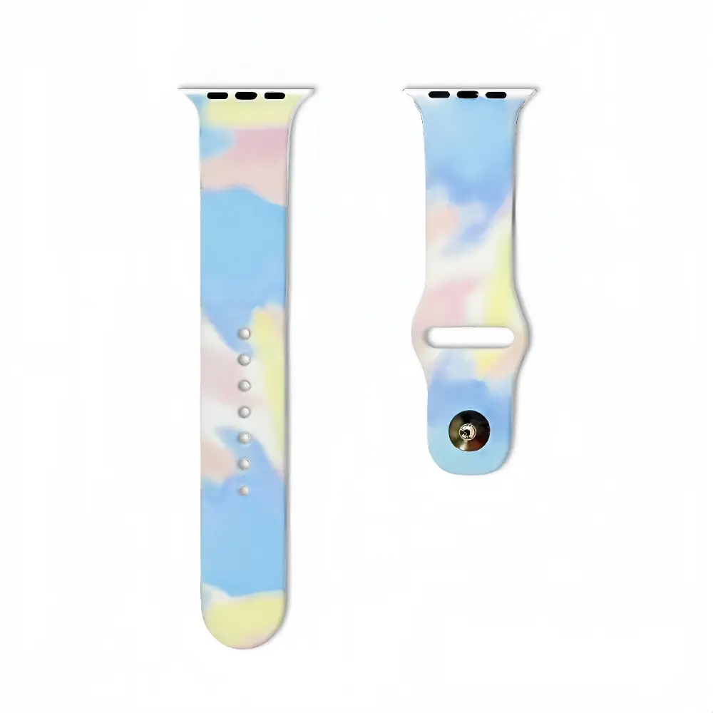 Brighten up your everyday look with the Pastel Tie-Dye Silicone Apple Watch Strap. Featuring a dreamy blend of baby blue, soft pink, and sunny yellow clouds, this strap is the perfect accessory for staying stylish. It brings a fresh, playful vibe to your outfit while keeping your wrist comfortable all day long.