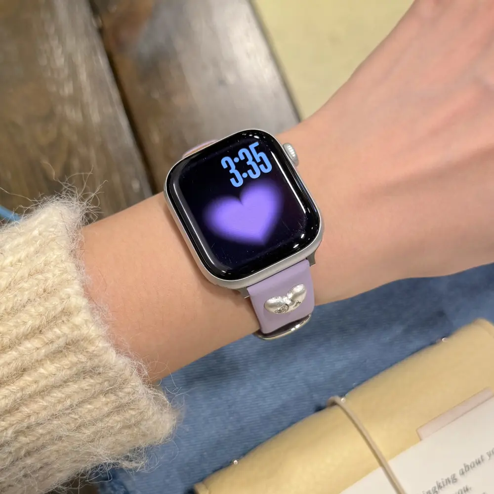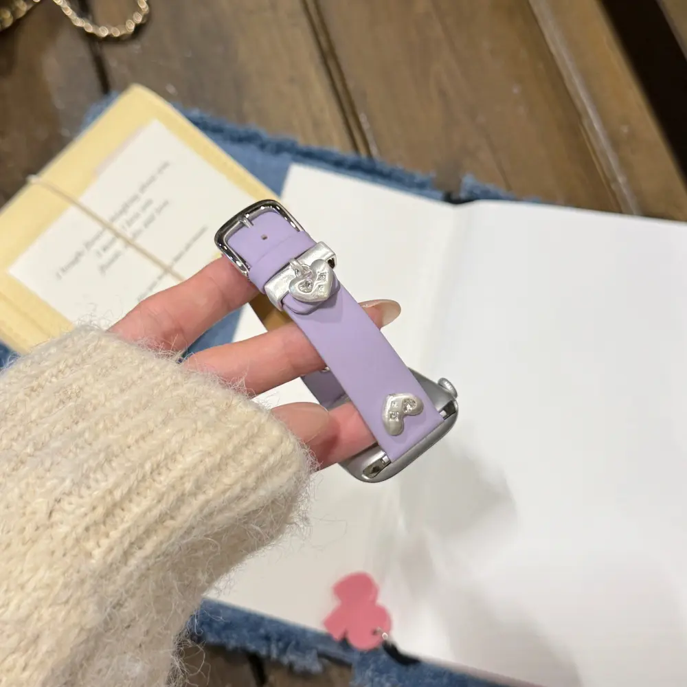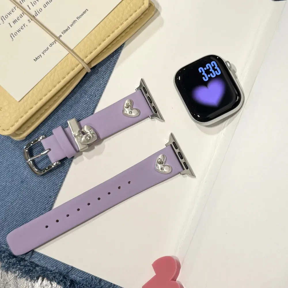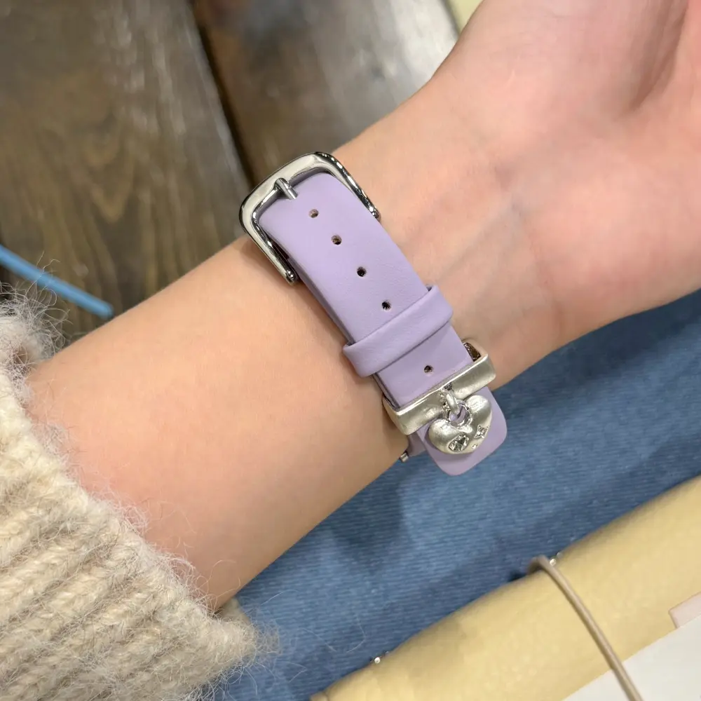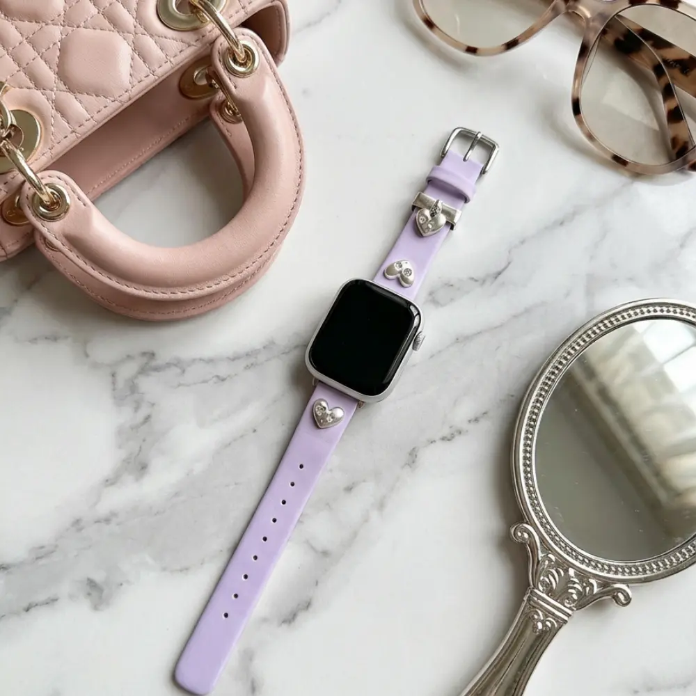 Elevate your daily tech with the Slim Leather Apple Watch Strap – Lilac Heart. Designed with a dainty silhouette and a dreamy Y2K metallic flair, it is the ultimate comfortable replacement for for those who want to upgrade their look with a comfortable and cute Apple Watch Band.