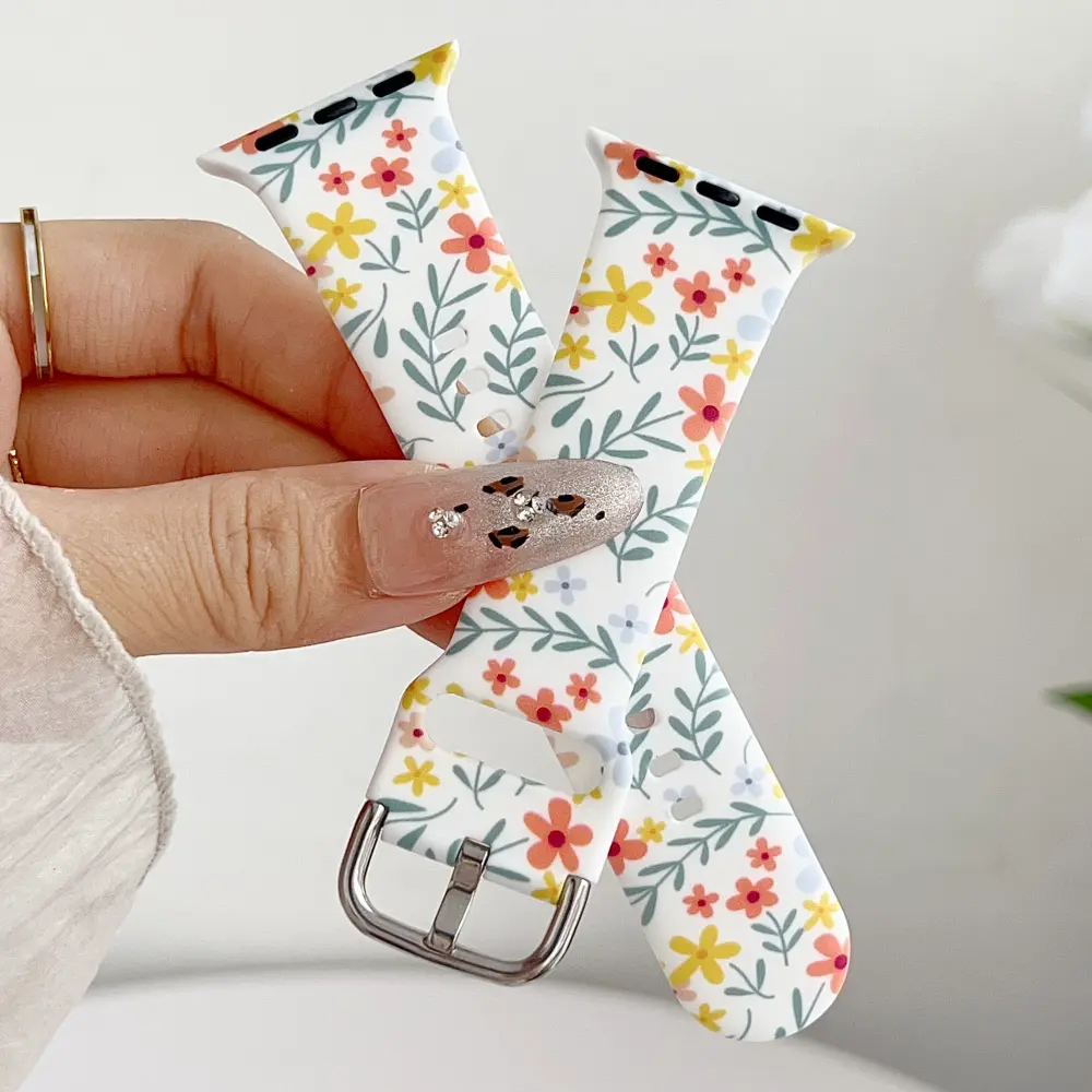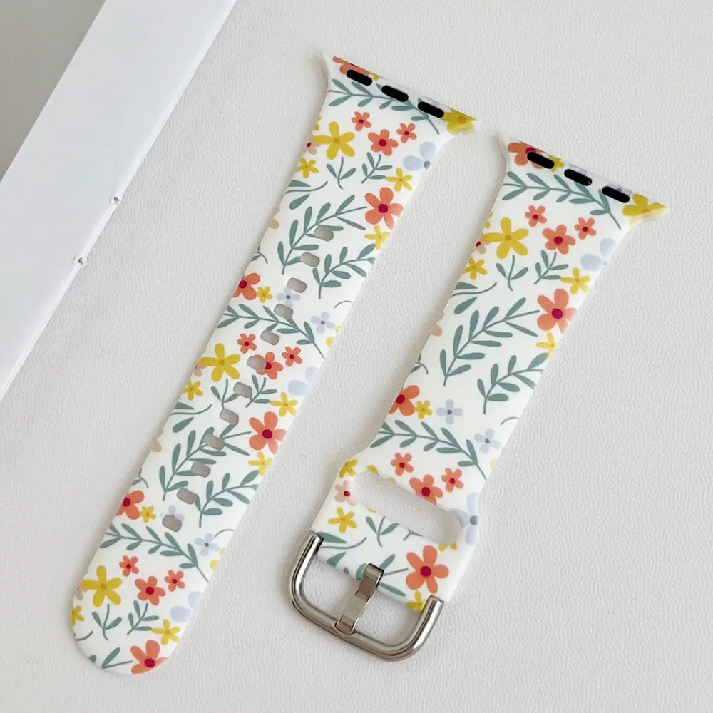 Refresh your wristwear with the Summer Meadow Silicone Apple Watch Strap. Featuring a cheerful ditsy floral pattern in sunny yellows and warm coral tones, this strap is the perfect accessory for staying stylish. It brings a fresh, summery charm to your modern tech while keeping your wrist comfortable all day long.